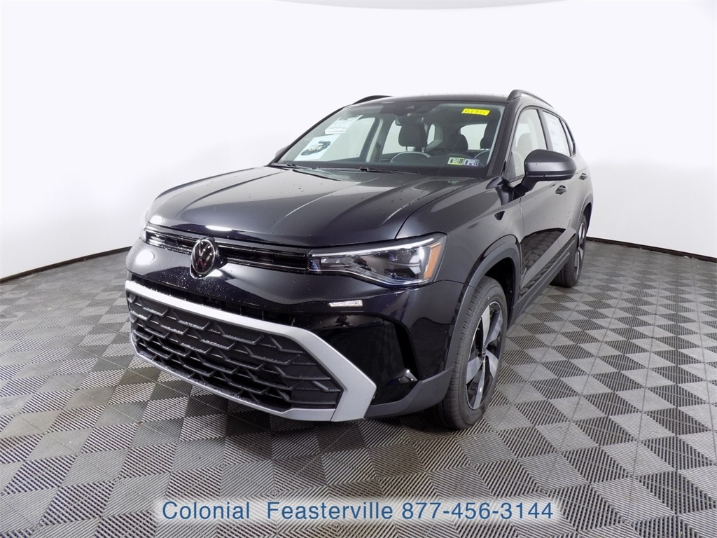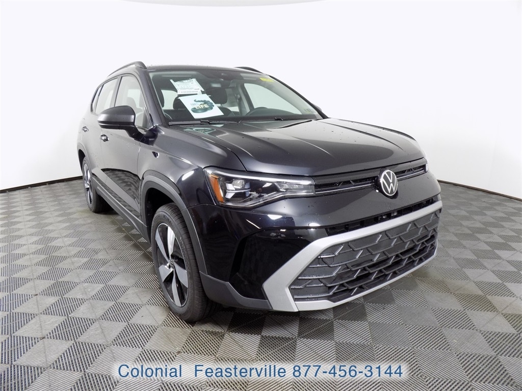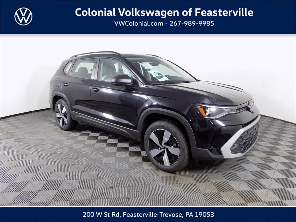 2025 Deep Black Pearl Volkswagen Taos 1.5T S Check out all these great option's 4-Wheel Disc Brakes, 6 Speakers, ABS brakes, Active Blind Spot Monitor, Air Conditioning, Alloy wheels, AM/FM radio, Auto High-beam Headlights, Brake assist, Bumpers: body-color, Cloth Seating Surfaces, Compass, Delay-off headlights, Driver door bin, Driver vanity mirror, Dual front impact airbags, Dual front side impact airbags, Electronic Stability Control, Emergency communication system: VW Car-Net Safe & Secure 5-year, Exterior Parking Camera Rear, Four wheel independent suspension, Front anti-roll bar, Front Bucket Seats, Front Center Armrest, Front reading lights, Front Strut Rear Multi-Link Suspension, Fully automatic headlights, Heated door mirrors, Heated Front Bucket Seats, Heated front seats, Heated steering wheel, Illuminated entry, Leather Shift Knob, Low tire pressure warning, Occupant sensing airbag, Outside temperature display, Overhead airbag, Overhead console, Panic alarm, Passenger door bin, Passenger vanity mirror, Power door mirrors, Power steering, Power windows, Radio data system, Radio: MIB3 Composition Color AM/FM, Rain sensing wipers, Rear anti-roll bar, Rear seat center armrest, Rear Spoiler, Rear window defroster, Rear window wiper, Remote keyless entry, Speed control, Speed-sensing steering, Split folding rear seat, Steering wheel mounted audio controls, Tachometer, Telescoping steering wheel, Tilt steering wheel, Traction control, Trip computer, Variably intermittent wipers, and Wheels: 18" 2-Tone Machined Alloy CALL NOW 877-483-6331!! ##### Delivering the Best Customer Experience is our #1 GOAL! Colonial Volkswagen is proud to offer only the finest automobiles. Price excludes sales Tax, tags, registration, title, doc fee & tire tax. *Prior sales excluded and Internet pricing cannot be combined with VW Credit's Special APR rates. Final price includes all applicable discounts for qualifying customers. Price may change depending on credit qualification criteria. While every reasonable effort is made to ensure the accuracy of this information, we are not responsible for any errors or omissions contained on these pages. Please verify any information in question with Colonial Volkswagen. Colonial Volkswagen, 200 W. Street Rd. Feasterville, PA, 19053. Visit us and Experience the Difference here at Colonial VW! CALL NOW 877-483-6331. 25/33 City/Highway MPG Price does not include tax, title, motor vehicle fees. Price includes all eligible dealer discounts and manufacturer incentives, not all customers may qualify. Certain restrictions apply, please see dealer for details. $500 - Retail Customer Bonus. Exp. 11/03/2025