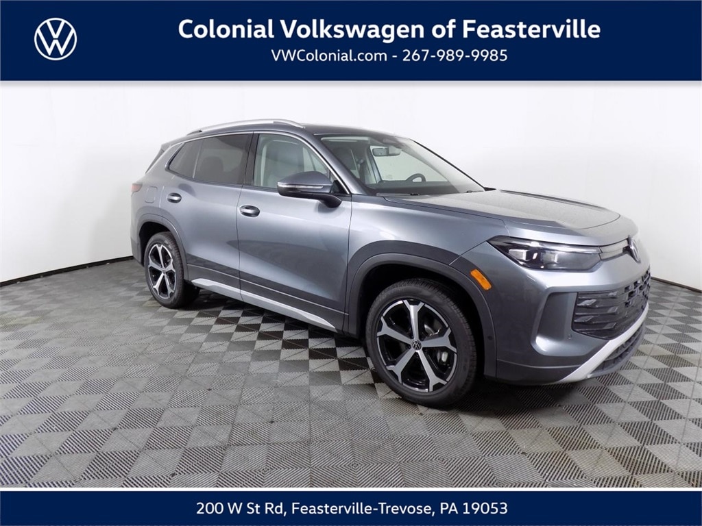 2025 Platinum Gray Metallic Volkswagen Tiguan 2.0T SE Check out all these great option's 4-Wheel Disc Brakes, 4-Wheel Independent Suspension, 7 Speakers Premium Sound, ABS brakes, Air Conditioning, Alloy wheels, AM/FM radio: SiriusXM with 360L, Auto High-beam Headlights, Auto-dimming Rear-View mirror, Automatic temperature control, Brake assist, Bumpers: body-color, Compass, Delay-off headlights, Driver door bin, Driver vanity mirror, Dual front impact airbags, Dual front side impact airbags, Electronic Stability Control, Emergency communication system: VW Car-Net Safe & Secure 5-year, Exterior Parking Camera Rear, Four wheel independent suspension, Front anti-roll bar, Front Bucket Seats, Front Center Armrest, Front dual zone A/C, Front reading lights, Fully automatic headlights, Heated door mirrors, Heated Front Seats, Heated front seats, Illuminated entry, Knee airbag, Leather Shift Knob, Low tire pressure warning, Occupant sensing airbag, Outside temperature display, Overhead airbag, Overhead console, Panic alarm, Passenger door bin, Passenger vanity mirror, Perforated V-Tex Leatherette Seating Surfaces, Power door mirrors, Power driver seat, Power Liftgate, Power steering, Power windows, Radio data system, Radio: MIB4 Composition Media Touchscreen AM/FM, Rain sensing wipers, Rear anti-roll bar, Rear reading lights, Rear seat center armrest, Rear side impact airbag, Rear Spoiler, Rear window defroster, Rear window wiper, Remote keyless entry, Security system, Speed control, Speed-sensing steering, Split folding rear seat, Steering wheel mounted audio controls, Tachometer, Telescoping steering wheel, Tilt steering wheel, Traction control, Trip computer, Turn signal indicator mirrors, Variably intermittent wipers, and Wheels: 19" 2-Tone Machined Alloy CALL NOW 877-483-6331!! ##### Delivering the Best Customer Experience is our #1 GOAL! Colonial Volkswagen is proud to offer only the finest automobiles. Price excludes sales Tax, tags, registration, title, doc fee & tire tax. *Prior sales excluded and Internet pricing cannot be combined with VW Credit's Special APR rates. Final price includes all applicable discounts for qualifying customers. Price may change depending on credit qualification criteria. While every reasonable effort is made to ensure the accuracy of this information, we are not responsible for any errors or omissions contained on these pages. Please verify any information in question with Colonial Volkswagen. Colonial Volkswagen, 200 W. Street Rd. Feasterville, PA, 19053. Visit us and Experience the Difference here at Colonial VW! CALL NOW 877-483-6331. 22/30 City/Highway MPG Price does not include tax, title, motor vehicle fees. Price includes all eligible dealer discounts and manufacturer incentives, not all customers may qualify. Certain restrictions apply, please see dealer for details. $1500 - Retail Customer Bonus. Exp. 11/03/2025