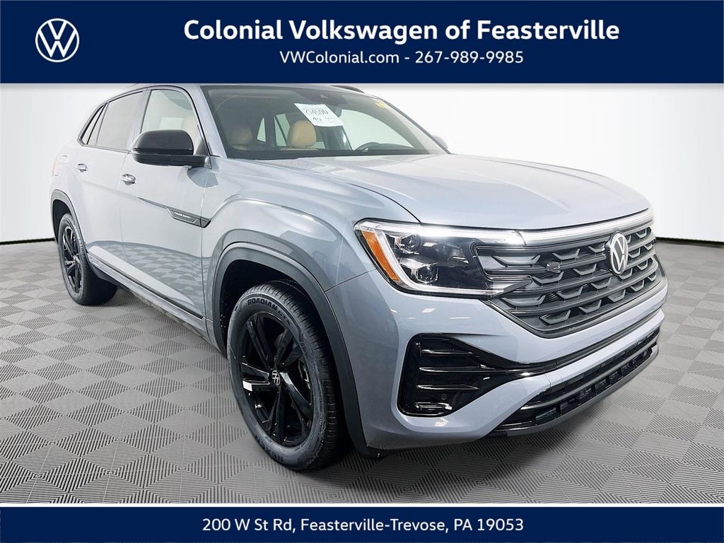 2026 Pure Gray Volkswagen Atlas Cross Sport 2.0T SEL R-Line Black Check out all these great option's 4-Wheel Disc Brakes, 4-Wheel Independent Suspension, 6 Speakers, ABS brakes, Air Conditioning, Alloy wheels, AM/FM radio: SiriusXM with 360L, Auto High-beam Headlights, Auto-dimming Rear-View mirror, Automatic temperature control, Brake assist, Bumpers: body-color, Compass, Delay-off headlights, Driver door bin, Driver vanity mirror, Dual front impact airbags, Dual front side impact airbags, Electronic Stability Control, Emergency communication system: VW Car-Net Safe & Secure 5-year, Exterior Parking Camera Rear, Four wheel independent suspension, Front anti-roll bar, Front Bucket Seats, Front Center Armrest, Front dual zone A/C, Front fog lights, Front reading lights, Fully automatic headlights, Garage door transmitter: HomeLink, Heads-Up Display, Heated and Actively Ventilated Front Bucket Seats, Heated door mirrors, Heated front seats, Heated rear seats, Heated steering wheel, Illuminated entry, Low tire pressure warning, Memory seat, Navigation System, Occupant sensing airbag, Outside temperature display, Overhead airbag, Overhead console, Panic alarm, Passenger door bin, Passenger vanity mirror, Perforated Vienna Leather Seating Surfaces, Power door mirrors, Power driver seat, Power Liftgate, Power Panoramic Moonroof, Power passenger seat, Power steering, Power windows, Radio data system, Radio: MIB3 Discover Pro with Navigation, Rain sensing wipers, Rear anti-roll bar, Rear reading lights, Rear seat center armrest, Rear Spoiler, Rear window defroster, Rear window wiper, Remote keyless entry, Security system, Speed control, Speed-sensing steering, Split folding rear seat, Steering wheel mounted audio controls, Tachometer, Telescoping steering wheel, Tilt steering wheel, Traction control, Trip computer, Turn signal indicator mirrors, Variably intermittent wipers, Ventilated front seats, and Wheels: 20" Black Painted Alloy CALL NOW 877-483-6331!! ##### Delivering the Best Customer Experience is our #1 GOAL! Colonial Volkswagen is proud to offer only the finest automobiles. Price excludes sales Tax, tags, registration, title, doc fee & tire tax. *Prior sales excluded and Internet pricing cannot be combined with VW Credit's Special APR rates. Final price includes all applicable discounts for qualifying customers. Price may change depending on credit qualification criteria. While every reasonable effort is made to ensure the accuracy of this information, we are not responsible for any errors or omissions contained on these pages. Please verify any information in question with Colonial Volkswagen. Colonial Volkswagen, 200 W. Street Rd. Feasterville, PA, 19053. Visit us and Experience the Difference here at Colonial VW! CALL NOW 877-483-6331."Advertised Best Cash Price represents the dealershipâs lowest available price and is offered in place of all other manufacturer or dealer incentives, rebates, special interest rates, or promotional offers. Offers may not be combined." 19/26 City/Highway MPG Price does not include tax, title, motor vehicle fees. Price includes all eligible dealer discounts and manufacturer incentives, not all customers may qualify. Certain restrictions apply, please see dealer for details. $2500 - Customer Bonus. Exp. 04/30/2026