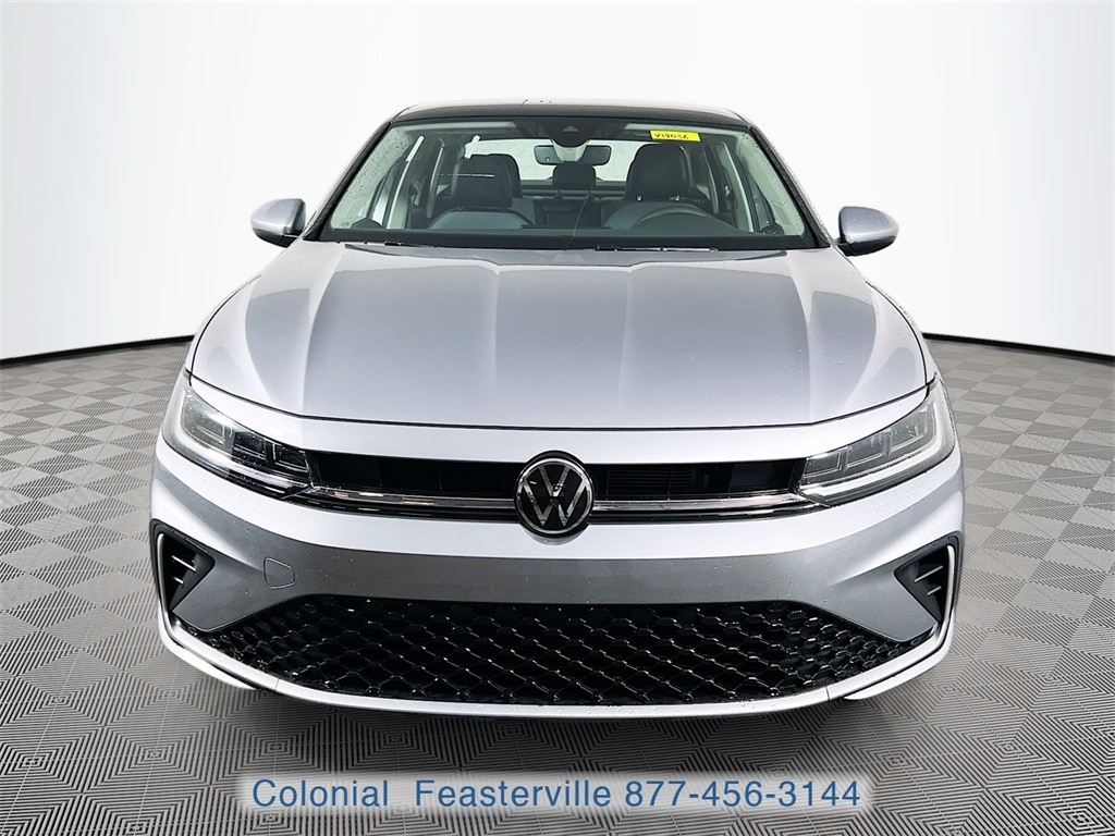 2026 Pyrite Silver Metallic Volkswagen Jetta 1.5T SE Check out all these great option's 4-Wheel Disc Brakes, 6 Speakers, ABS brakes, Active Blind Spot Monitor, Air Conditioning, Alloy wheels, AM/FM radio: SiriusXM with 360L, Auto-dimming Rear-View mirror, Automatic temperature control, Brake assist, Bumpers: body-color, CloudTex and V-Tex Leatherette Seat Trim, Delay-off headlights, Driver door bin, Driver vanity mirror, Dual front impact airbags, Dual front side impact airbags, Electronic Stability Control, Emergency communication system: VW Car-Net Safe & Secure 5-year, Exterior Parking Camera Rear, Front anti-roll bar, Front Bucket Seats, Front Center Armrest, Front dual zone A/C, Front wheel independent suspension, Fully automatic headlights, Heated door mirrors, Heated Front Seats, Heated front seats, Illuminated entry, Leather Shift Knob, Leather steering wheel, Low tire pressure warning, Occupant sensing airbag, Outside temperature display, Overhead airbag, Overhead console, Panic alarm, Passenger door bin, Passenger vanity mirror, Power door mirrors, Power driver seat, Power Panoramic Moonroof, Power steering, Power windows, Radio data system, Radio: MIB3 Composition Media with 8" Touchscreen, Rain sensing wipers, Rear anti-roll bar, Rear reading lights, Rear seat center armrest, Rear window defroster, Remote keyless entry, Speed control, Speed-sensing steering, Split folding rear seat, Steering wheel mounted audio controls, Tachometer, Telescoping steering wheel, Tilt steering wheel, Traction control, Trip computer, Variably intermittent wipers, and Wheels: 17" Twin 5-Spoke 2-Tone Machined Alloy CALL NOW 877-483-6331!! ##### Delivering the Best Customer Experience is our #1 GOAL! Colonial Volkswagen is proud to offer only the finest automobiles. Price excludes sales Tax, tags, registration, title, doc fee & tire tax. *Prior sales excluded and Internet pricing cannot be combined with VW Credit's Special APR rates. Final price includes all applicable discounts for qualifying customers. Price may change depending on credit qualification criteria. While every reasonable effort is made to ensure the accuracy of this information, we are not responsible for any errors or omissions contained on these pages. Please verify any information in question with Colonial Volkswagen. Colonial Volkswagen, 200 W. Street Rd. Feasterville, PA, 19053. Visit us and Experience the Difference here at Colonial VW! CALL NOW 877-483-6331. 29/40 City/Highway MPG Price does not include tax, title, motor vehicle fees. Price includes all eligible dealer discounts and manufacturer incentives, not all customers may qualify. Certain restrictions apply, please see dealer for details. $500 - Customer Bonus. Exp. 01/05/2026