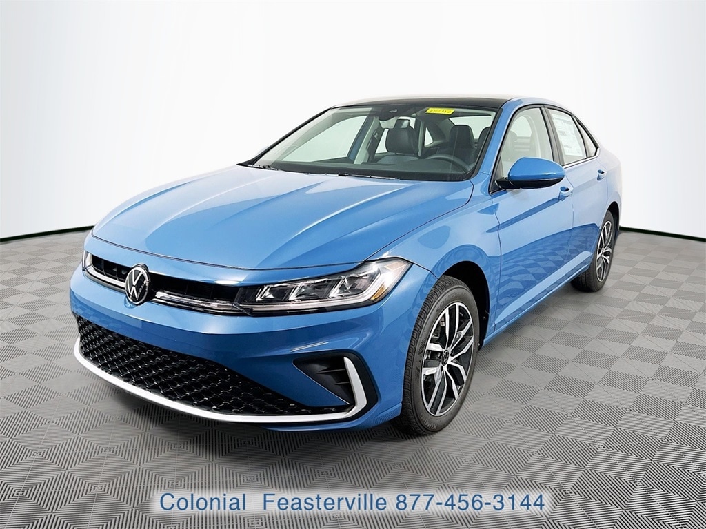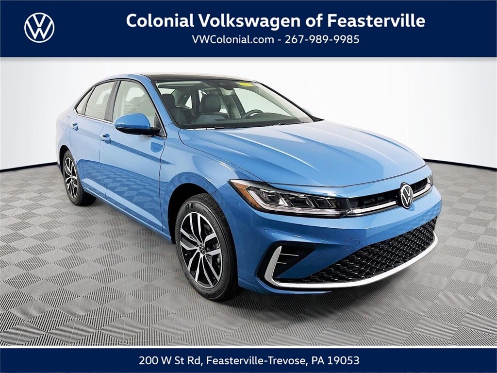 2026 Monterey Blue Pearl Volkswagen Jetta 1.5T SE Check out all these great option's 4-Wheel Disc Brakes, 6 Speakers, ABS brakes, Active Blind Spot Monitor, Air Conditioning, Alloy wheels, AM/FM radio: SiriusXM with 360L, Auto-dimming Rear-View mirror, Automatic temperature control, Brake assist, Bumpers: body-color, CloudTex and V-Tex Leatherette Seat Trim, Delay-off headlights, Driver door bin, Driver vanity mirror, Dual front impact airbags, Dual front side impact airbags, Electronic Stability Control, Emergency communication system: VW Car-Net Safe & Secure 5-year, Exterior Parking Camera Rear, Front anti-roll bar, Front Bucket Seats, Front Center Armrest, Front dual zone A/C, Front wheel independent suspension, Fully automatic headlights, Heated door mirrors, Heated Front Seats, Heated front seats, Illuminated entry, Leather Shift Knob, Leather steering wheel, Low tire pressure warning, Occupant sensing airbag, Outside temperature display, Overhead airbag, Overhead console, Panic alarm, Passenger door bin, Passenger vanity mirror, Power door mirrors, Power driver seat, Power Panoramic Moonroof, Power steering, Power windows, Radio data system, Radio: MIB3 Composition Media with 8" Touchscreen, Rain sensing wipers, Rear anti-roll bar, Rear reading lights, Rear seat center armrest, Rear window defroster, Remote keyless entry, Speed control, Speed-sensing steering, Split folding rear seat, Steering wheel mounted audio controls, Tachometer, Telescoping steering wheel, Tilt steering wheel, Traction control, Trip computer, Variably intermittent wipers, and Wheels: 17" Twin 5-Spoke 2-Tone Machined Alloy CALL NOW 877-483-6331!! ##### Delivering the Best Customer Experience is our #1 GOAL! Colonial Volkswagen is proud to offer only the finest automobiles. Price excludes sales Tax, tags, registration, title, doc fee & tire tax. *Prior sales excluded and Internet pricing cannot be combined with VW Credit's Special APR rates. Final price includes all applicable discounts for qualifying customers. Price may change depending on credit qualification criteria. While every reasonable effort is made to ensure the accuracy of this information, we are not responsible for any errors or omissions contained on these pages. Please verify any information in question with Colonial Volkswagen. Colonial Volkswagen, 200 W. Street Rd. Feasterville, PA, 19053. Visit us and Experience the Difference here at Colonial VW! CALL NOW 877-483-6331."Advertised Best Cash Price represents the dealershipâs lowest available price and is offered in place of all other manufacturer or dealer incentives, rebates, special interest rates, or promotional offers. Offers may not be combined." 29/40 City/Highway MPG Price does not include tax, title, motor vehicle fees. Price includes all eligible dealer discounts and manufacturer incentives, not all customers may qualify. Certain restrictions apply, please see dealer for details. $750 - Retail Customer Bonus. Exp. 02/02/2026