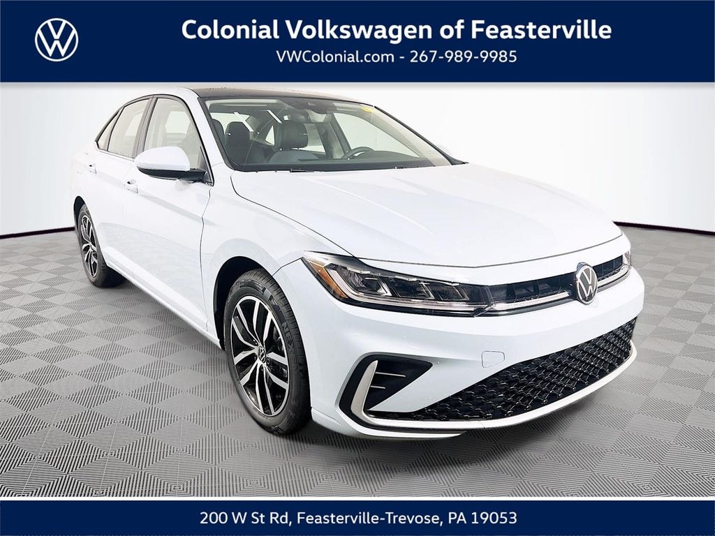 2026 Monument Gray Volkswagen Jetta 1.5T SE Check out all these great option's 4-Wheel Disc Brakes, 6 Speakers, ABS brakes, Active Blind Spot Monitor, Air Conditioning, Alloy wheels, AM/FM radio: SiriusXM with 360L, Auto-dimming Rear-View mirror, Automatic temperature control, Brake assist, Bumpers: body-color, CloudTex and V-Tex Leatherette Seat Trim, Delay-off headlights, Driver door bin, Driver vanity mirror, Dual front impact airbags, Dual front side impact airbags, Electronic Stability Control, Emergency communication system: VW Car-Net Safe & Secure 5-year, Exterior Parking Camera Rear, Front anti-roll bar, Front Bucket Seats, Front Center Armrest, Front dual zone A/C, Front wheel independent suspension, Fully automatic headlights, Heated door mirrors, Heated Front Seats, Heated front seats, Illuminated entry, Leather Shift Knob, Leather steering wheel, Low tire pressure warning, Occupant sensing airbag, Outside temperature display, Overhead airbag, Overhead console, Panic alarm, Passenger door bin, Passenger vanity mirror, Power door mirrors, Power driver seat, Power Panoramic Moonroof, Power steering, Power windows, Radio data system, Radio: MIB3 Composition Media with 8" Touchscreen, Rain sensing wipers, Rear anti-roll bar, Rear reading lights, Rear seat center armrest, Rear window defroster, Remote keyless entry, Speed control, Speed-sensing steering, Split folding rear seat, Steering wheel mounted audio controls, Tachometer, Telescoping steering wheel, Tilt steering wheel, Traction control, Trip computer, Variably intermittent wipers, and Wheels: 17" Twin 5-Spoke 2-Tone Machined Alloy CALL NOW 877-483-6331!! ##### Delivering the Best Customer Experience is our #1 GOAL! Colonial Volkswagen is proud to offer only the finest automobiles. Price excludes sales Tax, tags, registration, title, doc fee & tire tax. *Prior sales excluded and Internet pricing cannot be combined with VW Credit's Special APR rates. Final price includes all applicable discounts for qualifying customers. Price may change depending on credit qualification criteria. While every reasonable effort is made to ensure the accuracy of this information, we are not responsible for any errors or omissions contained on these pages. Please verify any information in question with Colonial Volkswagen. Colonial Volkswagen, 200 W. Street Rd. Feasterville, PA, 19053. Visit us and Experience the Difference here at Colonial VW! CALL NOW 877-483-6331."Advertised Best Cash Price represents the dealershipâs lowest available price and is offered in place of all other manufacturer or dealer incentives, rebates, special interest rates, or promotional offers. Offers may not be combined." 29/40 City/Highway MPG Price does not include tax, title, motor vehicle fees. Price includes all eligible dealer discounts and manufacturer incentives, not all customers may qualify. Certain restrictions apply, please see dealer for details. $1750 - Customer Bonus. Exp. 04/30/2026