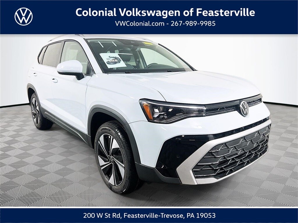 2026 Monument Gray Volkswagen Taos 1.5T SE Check out all these great option's 4-Wheel Disc Brakes, 6 Speakers, ABS brakes, Active Blind Spot Monitor, Air Conditioning, Alloy wheels, AM/FM radio: SiriusXM with 360L, Auto High-beam Headlights, Automatic temperature control, Brake assist, Bumpers: body-color, Cloudtex and Cloth Seating Surfaces, Compass, Delay-off headlights, Driver door bin, Driver vanity mirror, Dual front impact airbags, Dual front side impact airbags, Electronic Stability Control, Emergency communication system: VW Car-Net Safe & Secure 5-year, Exterior Parking Camera Rear, Four wheel independent suspension, Front anti-roll bar, Front Bucket Seats, Front Center Armrest, Front dual zone A/C, Front reading lights, Front Strut Rear Multi-Link Suspension, Fully automatic headlights, Heated door mirrors, Heated Front Bucket Seats, Heated front seats, Heated steering wheel, Illuminated entry, Leather Shift Knob, Low tire pressure warning, Occupant sensing airbag, Outside temperature display, Overhead airbag, Overhead console, Panic alarm, Passenger door bin, Passenger vanity mirror, Power door mirrors, Power driver seat, Power steering, Power windows, Radio data system, Radio: MIB3 Composition Media AM/FM/HD, Rain sensing wipers, Rear anti-roll bar, Rear seat center armrest, Rear Spoiler, Rear window defroster, Rear window wiper, Remote keyless entry, Security system, Speed control, Speed-sensing steering, Split folding rear seat, Steering wheel mounted audio controls, Tachometer, Telescoping steering wheel, Tilt steering wheel, Traction control, Trip computer, Variably intermittent wipers, and Wheels: 18" 2-Tone Machined Alloy CALL NOW 877-483-6331!! ##### Delivering the Best Customer Experience is our #1 GOAL! Colonial Volkswagen is proud to offer only the finest automobiles. Price excludes sales Tax, tags, registration, title, doc fee & tire tax. *Prior sales excluded and Internet pricing cannot be combined with VW Credit's Special APR rates. Final price includes all applicable discounts for qualifying customers. Price may change depending on credit qualification criteria. While every reasonable effort is made to ensure the accuracy of this information, we are not responsible for any errors or omissions contained on these pages. Please verify any information in question with Colonial Volkswagen. Colonial Volkswagen, 200 W. Street Rd. Feasterville, PA, 19053. Visit us and Experience the Difference here at Colonial VW! CALL NOW 877-483-6331."Advertised Best Cash Price represents the dealershipâs lowest available price and is offered in place of all other manufacturer or dealer incentives, rebates, special interest rates, or promotional offers. Offers may not be combined." 25/33 City/Highway MPG Price does not include tax, title, motor vehicle fees. Price includes all eligible dealer discounts and manufacturer incentives, not all customers may qualify. Certain restrictions apply, please see dealer for details. $500 - Customer Bonus. Exp. 04/30/2026