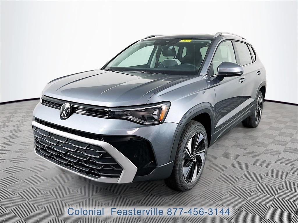 2026 Platinum Gray Metallic Volkswagen Taos 1.5T SE Check out all these great option's 4-Wheel Disc Brakes, 6 Speakers, ABS brakes, Active Blind Spot Monitor, Air Conditioning, Alloy wheels, AM/FM radio: SiriusXM with 360L, Auto High-beam Headlights, Automatic temperature control, Brake assist, Bumpers: body-color, Cloudtex and Cloth Seating Surfaces, Compass, Delay-off headlights, Driver door bin, Driver vanity mirror, Dual front impact airbags, Dual front side impact airbags, Electronic Stability Control, Emergency communication system: VW Car-Net Safe & Secure 5-year, Exterior Parking Camera Rear, Four wheel independent suspension, Front anti-roll bar, Front Bucket Seats, Front Center Armrest, Front dual zone A/C, Front reading lights, Front Strut Rear Multi-Link Suspension, Fully automatic headlights, Heated door mirrors, Heated Front Bucket Seats, Heated front seats, Heated steering wheel, Illuminated entry, Leather Shift Knob, Low tire pressure warning, Occupant sensing airbag, Outside temperature display, Overhead airbag, Overhead console, Panic alarm, Passenger door bin, Passenger vanity mirror, Power door mirrors, Power driver seat, Power steering, Power windows, Radio data system, Radio: MIB3 Composition Media AM/FM/HD, Rain sensing wipers, Rear anti-roll bar, Rear seat center armrest, Rear Spoiler, Rear window defroster, Rear window wiper, Remote keyless entry, Security system, Speed control, Speed-sensing steering, Split folding rear seat, Steering wheel mounted audio controls, Tachometer, Telescoping steering wheel, Tilt steering wheel, Traction control, Trip computer, Variably intermittent wipers, and Wheels: 18" 2-Tone Machined Alloy CALL NOW 877-483-6331!! ##### Delivering the Best Customer Experience is our #1 GOAL! Colonial Volkswagen is proud to offer only the finest automobiles. Price excludes sales Tax, tags, registration, title, doc fee & tire tax. *Prior sales excluded and Internet pricing cannot be combined with VW Credit's Special APR rates. Final price includes all applicable discounts for qualifying customers. Price may change depending on credit qualification criteria. While every reasonable effort is made to ensure the accuracy of this information, we are not responsible for any errors or omissions contained on these pages. Please verify any information in question with Colonial Volkswagen. Colonial Volkswagen, 200 W. Street Rd. Feasterville, PA, 19053. Visit us and Experience the Difference here at Colonial VW! CALL NOW 877-483-6331. 25/33 City/Highway MPG