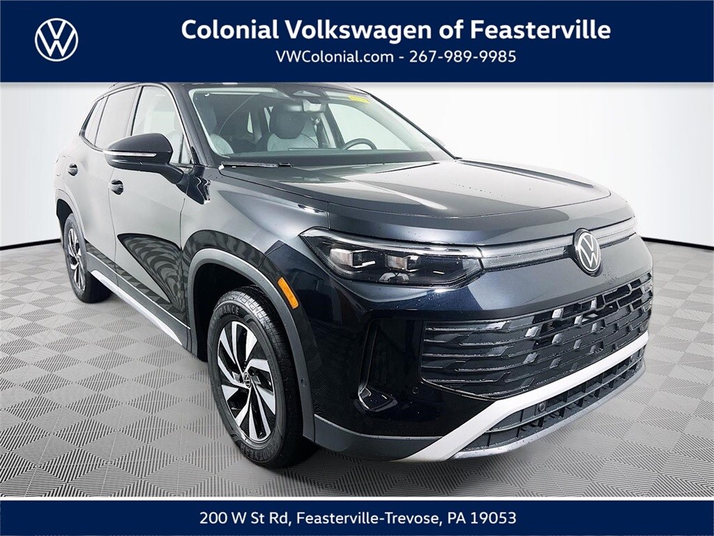 2026 Deep Black Pearl Volkswagen Tiguan 2.0T S Check out all these great option's 4-Wheel Disc Brakes, 4-Wheel Independent Suspension, 7 Speakers Premium Sound, ABS brakes, Air Conditioning, Alloy wheels, AM/FM radio: SiriusXM with 360L, Auto High-beam Headlights, Automatic temperature control, Brake assist, Bumpers: body-color, Cloth Seating Surfaces, Compass, Delay-off headlights, Driver door bin, Driver vanity mirror, Dual front impact airbags, Dual front side impact airbags, Electronic Stability Control, Emergency communication system, Exterior Parking Camera Rear, Four wheel independent suspension, Front anti-roll bar, Front Bucket Seats, Front Center Armrest, Front dual zone A/C, Front reading lights, Fully automatic headlights, Heated door mirrors, Heated Front Seats, Heated front seats, Illuminated entry, Knee airbag, Leather Shift Knob, Low tire pressure warning, Occupant sensing airbag, Outside temperature display, Overhead airbag, Overhead console, Panic alarm, Passenger door bin, Passenger vanity mirror, Power door mirrors, Power steering, Power windows, Radio data system, Radio: MIB4 Composition Media Touchscreen with AM/FM, Rain sensing wipers, Rear anti-roll bar, Rear reading lights, Rear seat center armrest, Rear side impact airbag, Rear Spoiler, Rear window defroster, Rear window wiper, Remote keyless entry, Speed control, Speed-sensing steering, Split folding rear seat, Steering wheel mounted audio controls, Tachometer, Telescoping steering wheel, Tilt steering wheel, Traction control, Trip computer, Turn signal indicator mirrors, Variably intermittent wipers, and Wheels: 17" 2-Tone Machined Alloy CALL NOW 877-483-6331!! ##### Delivering the Best Customer Experience is our #1 GOAL! Colonial Volkswagen is proud to offer only the finest automobiles. Price excludes sales Tax, tags, registration, title, doc fee & tire tax. *Prior sales excluded and Internet pricing cannot be combined with VW Credit's Special APR rates. Final price includes all applicable discounts for qualifying customers. Price may change depending on credit qualification criteria. While every reasonable effort is made to ensure the accuracy of this information, we are not responsible for any errors or omissions contained on these pages. Please verify any information in question with Colonial Volkswagen. Colonial Volkswagen, 200 W. Street Rd. Feasterville, PA, 19053. Visit us and Experience the Difference here at Colonial VW! CALL NOW 877-483-6331."Advertised Best Cash Price represents the dealershipâs lowest available price and is offered in place of all other manufacturer or dealer incentives, rebates, special interest rates, or promotional offers. Offers may not be combined." Price does not include tax, title, motor vehicle fees. Price includes all eligible dealer discounts and manufacturer incentives, not all customers may qualify. Certain restrictions apply, please see dealer for details. $1000 - Customer Bonus. Exp. 04/30/2026