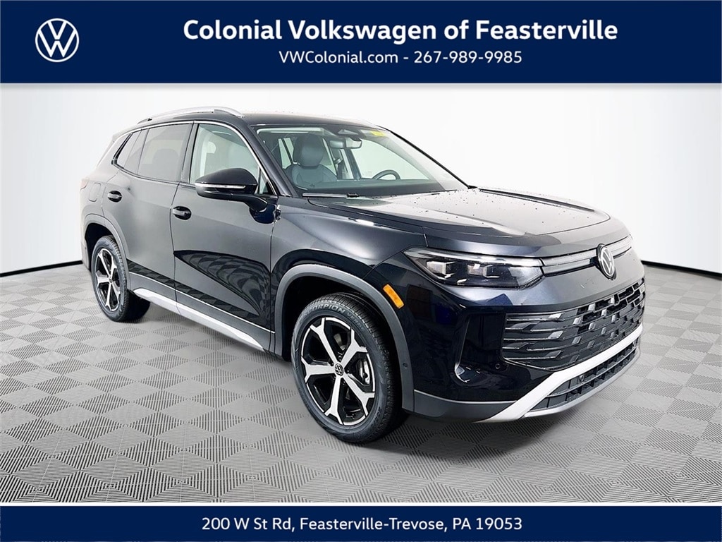 2026 deep black pearl Volkswagen Tiguan 2.0T SE Check out all these great option's 4-Wheel Disc Brakes, 4-Wheel Independent Suspension, 7 Speakers Premium Sound, ABS brakes, Air Conditioning, Alloy wheels, AM/FM radio: SiriusXM with 360L, Auto High-beam Headlights, Auto-dimming Rear-View mirror, Automatic temperature control, Brake assist, Bumpers: body-color, Compass, Delay-off headlights, Driver door bin, Driver vanity mirror, Dual front impact airbags, Dual front side impact airbags, Electronic Stability Control, Emergency communication system, Exterior Parking Camera Rear, Four wheel independent suspension, Front anti-roll bar, Front Bucket Seats, Front Center Armrest, Front dual zone A/C, Front reading lights, Fully automatic headlights, Heated door mirrors, Heated Front Seats, Heated front seats, Illuminated entry, Knee airbag, Leather Shift Knob, Low tire pressure warning, Occupant sensing airbag, Outside temperature display, Overhead airbag, Overhead console, Panic alarm, Passenger door bin, Passenger vanity mirror, Perforated V-Tex Leatherette Seating Surfaces, Power door mirrors, Power driver seat, Power Liftgate, Power steering, Power windows, Radio data system, Radio: MIB4 Composition Media Touchscreen with AM/FM, Rain sensing wipers, Rear anti-roll bar, Rear reading lights, Rear seat center armrest, Rear side impact airbag, Rear Spoiler, Rear window defroster, Rear window wiper, Remote keyless entry, Security system, Speed control, Speed-sensing steering, Split folding rear seat, Steering wheel mounted audio controls, Tachometer, Telescoping steering wheel, Tilt steering wheel, Traction control, Trip computer, Turn signal indicator mirrors, Variably intermittent wipers, and Wheels: 19" 2-Tone Machined Alloy CALL NOW 877-483-6331!! ##### Delivering the Best Customer Experience is our #1 GOAL! Colonial Volkswagen is proud to offer only the finest automobiles. Price excludes sales Tax, tags, registration, title, doc fee & tire tax. *Prior sales excluded and Internet pricing cannot be combined with VW Credit's Special APR rates. Final price includes all applicable discounts for qualifying customers. Price may change depending on credit qualification criteria. While every reasonable effort is made to ensure the accuracy of this information, we are not responsible for any errors or omissions contained on these pages. Please verify any information in question with Colonial Volkswagen. Colonial Volkswagen, 200 W. Street Rd. Feasterville, PA, 19053. Visit us and Experience the Difference here at Colonial VW! CALL NOW 877-483-6331. Price does not include tax, title, motor vehicle fees. Price includes all eligible dealer discounts and manufacturer incentives, not all customers may qualify. Certain restrictions apply, please see dealer for details. $1000 - Retail Customer Bonus. Exp. 01/04/2026