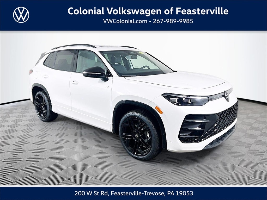 2026 opal white pearl Volkswagen Tiguan 2.0T SE R-Line Black Check out all these great option's 4-Wheel Disc Brakes, 4-Wheel Independent Suspension, 7 Speakers Premium Sound, ABS brakes, Air Conditioning, Alloy wheels, AM/FM radio: SiriusXM with 360L, Auto High-beam Headlights, Auto-dimming Rear-View mirror, Automatic temperature control, Brake assist, Bumpers: body-color, Compass, Delay-off headlights, Driver door bin, Driver vanity mirror, Dual front impact airbags, Dual front side impact airbags, Electronic Stability Control, Emergency communication system, Exterior Parking Camera Rear, Four wheel independent suspension, Front anti-roll bar, Front Bucket Seats, Front Center Armrest, Front dual zone A/C, Front reading lights, Fully automatic headlights, Heads-Up Display, Heated door mirrors, Heated Front Seats, Heated front seats, Illuminated entry, Knee airbag, Leather Shift Knob, Leather steering wheel, Low tire pressure warning, Occupant sensing airbag, Outside temperature display, Overhead airbag, Overhead console, Panic alarm, Passenger door bin, Passenger vanity mirror, Perforated V-Tex Leatherette Seating Surfaces, Power door mirrors, Power driver seat, Power Liftgate, Power Panoramic Moonroof, Power steering, Power windows, Radio data system, Radio: MIB4 Composition Media Touchscreen with AM/FM, Rain sensing wipers, Rear anti-roll bar, Rear reading lights, Rear seat center armrest, Rear side impact airbag, Rear Spoiler, Rear window defroster, Rear window wiper, Remote keyless entry, Security system, Speed control, Speed-sensing steering, Split folding rear seat, Sport steering wheel, Steering wheel mounted audio controls, Tachometer, Telescoping steering wheel, Tilt steering wheel, Traction control, Trip computer, Turn signal indicator mirrors, Variably intermittent wipers, and Wheels: 20" Black Painted Alloy CALL NOW 877-483-6331!! ##### Delivering the Best Customer Experience is our #1 GOAL! Colonial Volkswagen is proud to offer only the finest automobiles. Price excludes sales Tax, tags, registration, title, doc fee & tire tax. *Prior sales excluded and Internet pricing cannot be combined with VW Credit's Special APR rates. Final price includes all applicable discounts for qualifying customers. Price may change depending on credit qualification criteria. While every reasonable effort is made to ensure the accuracy of this information, we are not responsible for any errors or omissions contained on these pages. Please verify any information in question with Colonial Volkswagen. Colonial Volkswagen, 200 W. Street Rd. Feasterville, PA, 19053. Visit us and Experience the Difference here at Colonial VW! CALL NOW 877-483-6331. Price does not include tax, title, motor vehicle fees. Price includes all eligible dealer discounts and manufacturer incentives, not all customers may qualify. Certain restrictions apply, please see dealer for details. $1000 - Retail Customer Bonus. Exp. 01/04/2026