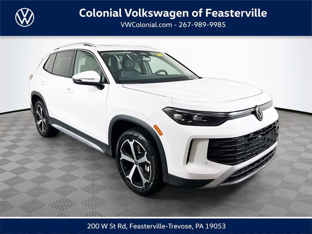 2026 Pure White Volkswagen Tiguan 2.0T SE Check out all these great option's 4-Wheel Disc Brakes, 4-Wheel Independent Suspension, 7 Speakers Premium Sound, ABS brakes, Air Conditioning, Alloy wheels, AM/FM radio: SiriusXM with 360L, Auto High-beam Headlights, Auto-dimming Rear-View mirror, Automatic temperature control, Brake assist, Bumpers: body-color, Compass, Delay-off headlights, Driver door bin, Driver vanity mirror, Dual front impact airbags, Dual front side impact airbags, Electronic Stability Control, Emergency communication system, Exterior Parking Camera Rear, Four wheel independent suspension, Front anti-roll bar, Front Bucket Seats, Front Center Armrest, Front dual zone A/C, Front reading lights, Fully automatic headlights, Heated door mirrors, Heated Front Seats, Heated front seats, Illuminated entry, Knee airbag, Leather Shift Knob, Low tire pressure warning, Occupant sensing airbag, Outside temperature display, Overhead airbag, Overhead console, Panic alarm, Passenger door bin, Passenger vanity mirror, Perforated V-Tex Leatherette Seating Surfaces, Power door mirrors, Power driver seat, Power Liftgate, Power steering, Power windows, Radio data system, Radio: MIB4 Composition Media Touchscreen w/AM/FM, Rain sensing wipers, Rear anti-roll bar, Rear reading lights, Rear seat center armrest, Rear side impact airbag, Rear Spoiler, Rear window defroster, Rear window wiper, Remote keyless entry, Security system, Speed control, Speed-sensing steering, Split folding rear seat, Steering wheel mounted audio controls, Tachometer, Telescoping steering wheel, Tilt steering wheel, Traction control, Trip computer, Turn signal indicator mirrors, Variably intermittent wipers, and Wheels: 19" 2-Tone Machined Alloy CALL NOW 877-483-6331!! ##### Delivering the Best Customer Experience is our #1 GOAL! Colonial Volkswagen is proud to offer only the finest automobiles. Price excludes sales Tax, tags, registration, title, doc fee & tire tax. *Prior sales excluded and Internet pricing cannot be combined with VW Credit's Special APR rates. Final price includes all applicable discounts for qualifying customers. Price may change depending on credit qualification criteria. While every reasonable effort is made to ensure the accuracy of this information, we are not responsible for any errors or omissions contained on these pages. Please verify any information in question with Colonial Volkswagen. Colonial Volkswagen, 200 W. Street Rd. Feasterville, PA, 19053. Visit us and Experience the Difference here at Colonial VW! CALL NOW 877-483-6331."Advertised Best Cash Price represents the dealershipâs lowest available price and is offered in place of all other manufacturer or dealer incentives, rebates, special interest rates, or promotional offers. Offers may not be combined." Price does not include tax, title, motor vehicle fees. Price includes all eligible dealer discounts and manufacturer incentives, not all customers may qualify. Certain restrictions apply, please see dealer for details. $1000 - Customer Bonus. Exp. 04/30/2026